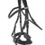 Testero suave y acolchado de diseño anatómico para una mayor comodidad en la parte de las orejas. Frontalera con cadena decorativa. Riendas de cinta. Negro.