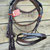 En cuero con frontalera y muserola inglesa, riendas de goma tono sobre tono ancho 5/8 pulgadas, hebillas acero inox.