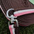 Hecho de canutillo, forma plana, con cadena resistente que llega al mosquetón y asa para un mejor